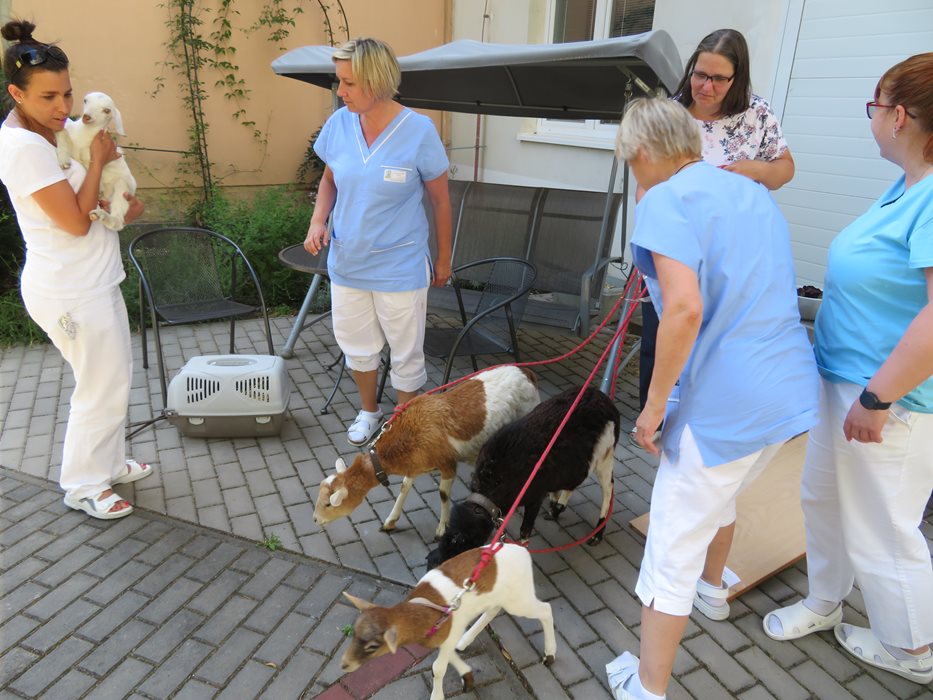 Dnešní odpoledne na naše obyvatele čekalo na zahradě velké překvapení v podobě zvířátek. Všechny návštěva moc potěšila, obzvláště pak malé kůzlátko Bezinka. K pohoštění byla připravena malá ochutnávka sýrů.
