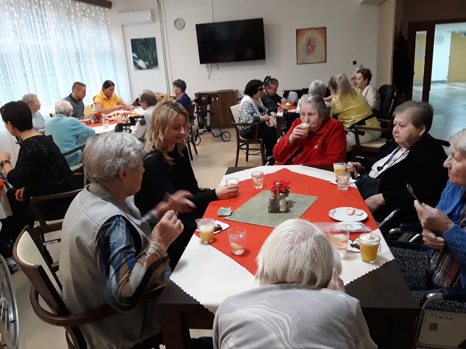 Dobrovolníci strávili se seniory příjemné chvíle hraním společenských her, během nichž jsme si pochutnali na buchtě a míchaném drinku. Na závěr dobrovolníci potěšili naše klienty ručně psanými vánočními přáníčky.