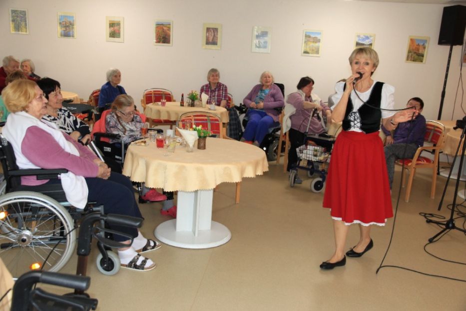 Odpoledne všem rychle uběhlo při veselých písničkách, které jsme si mohli společně zazpívat. Velmi příjemné bylo i připravené občerstvení - jablkové řezy, káva a osvěžující limonáda.