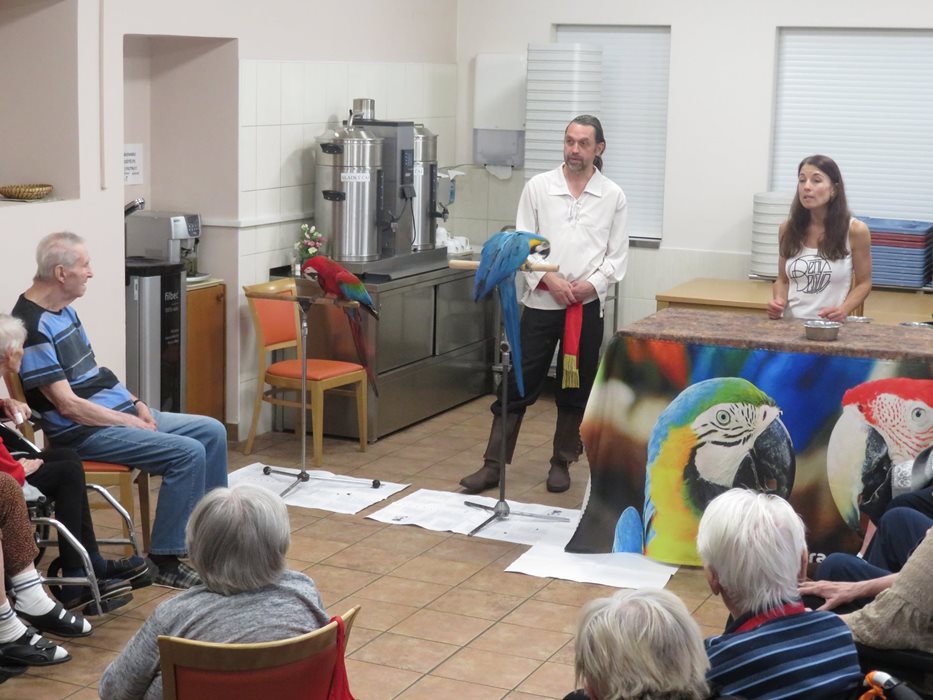 Dnes jsme všichni s velkým potěšením přivítali vzácnou návštěvu. Přišli za námi papoušek Šmudla a papoušek Arášek, které nám předvedli, co umí.