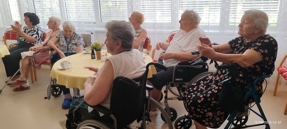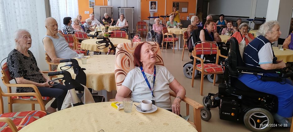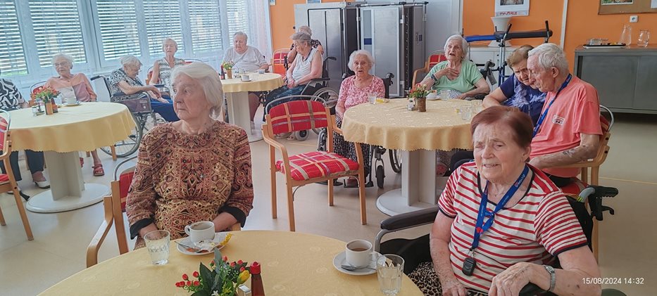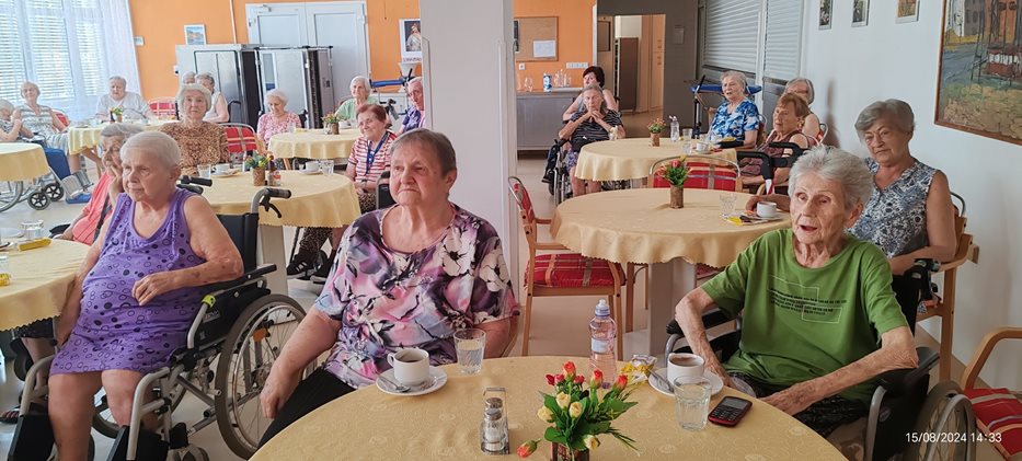 Příjemné odpoledne jsme strávili ve společnosti harmonikáře pana Lukeše. Společně jsme si zazpívali známé lidové písně a pochutnali si na kávě a dezertu.