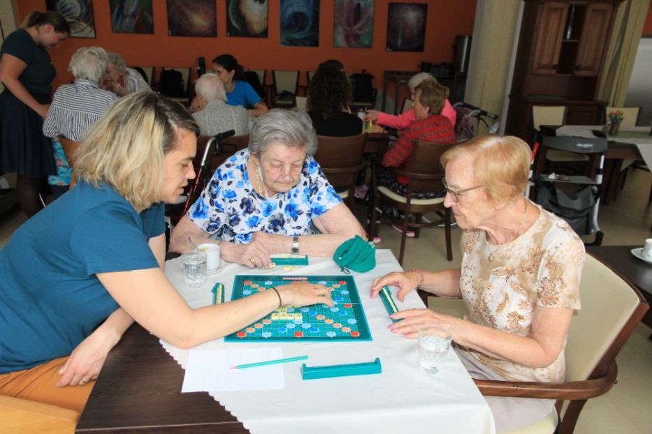 Společně jsme si zahráli různé deskové hry a pustili se i do soutěžního klání ve hře "šprtec".