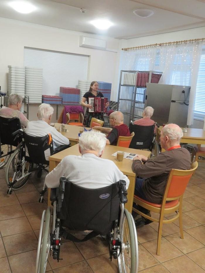 Pozvali jsme harmonikářku Terezku, aby s námi strávila příjemné odpoledne. Společně jsme si zazpívali lidové písničky z různých krajů naší krásné vlasti.