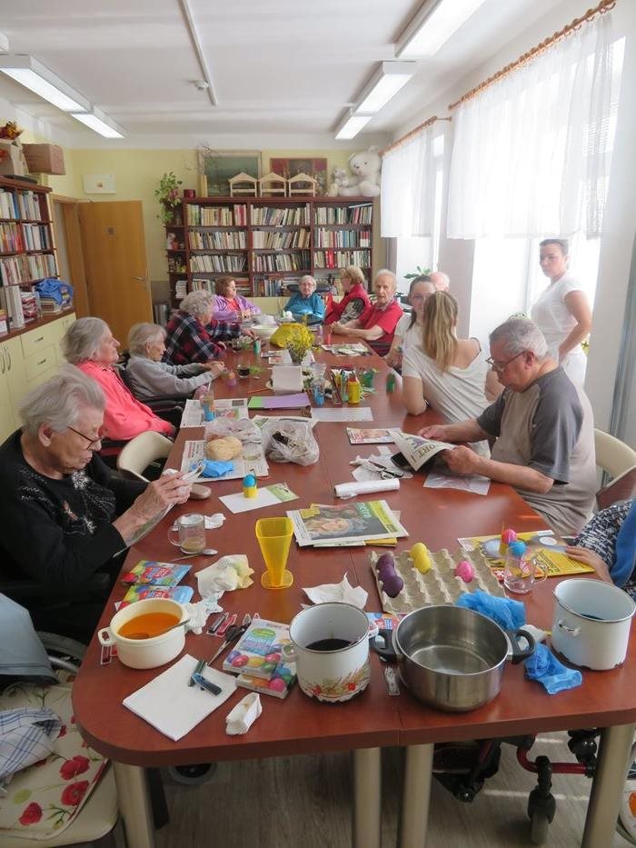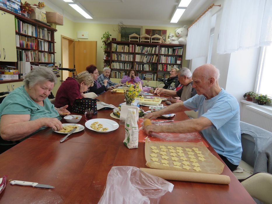 Barvení vajíček a pečení lineckého velikonočního cukroví na společné posezení.