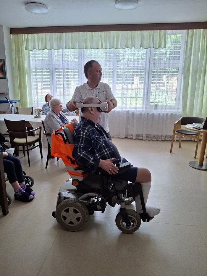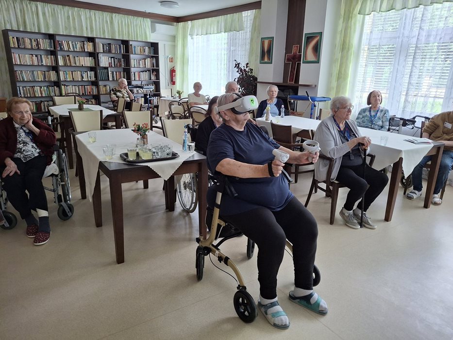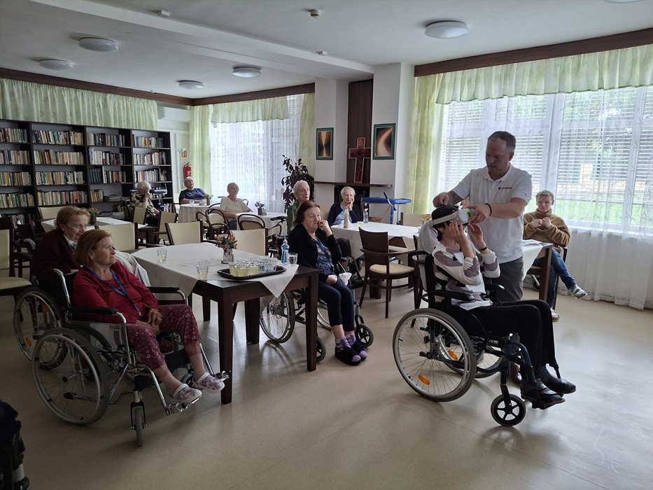 V rámci inovativní aktivizace si naši klienti mohli vyzkoušet virtuální realitu, která podpořila nejen kognitivní funkce, ale i motoriku, dýchání a celkovou relaxaci. Zážitek byl pro mnohé z nich novinkou, která přinesla radost a zvědavost.