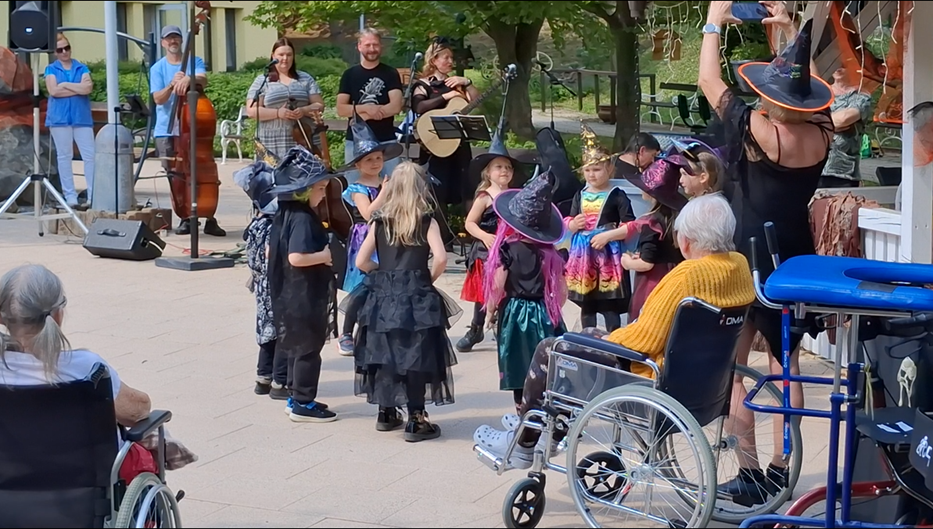 Tradiční pálení čarodějnic se u nás neslo ve znamení skvělé nálady a bohatého programu. Celé odpoledne nám hrála živá country kapela, která vytvořila výbornou atmosféru a rozezpívala celou zahradu. Zpestřením programu bylo milé vystoupení malých čarodějnic z MŠ Vinohrady, které sklidilo nadšený potlesk. O překvapení se postaraly i naše pracovnice, které si připravily veselý taneček. Nechybělo ani oblíbené opékání špekáčků, které završilo povedené odpoledne plné pohody a úsměvů.