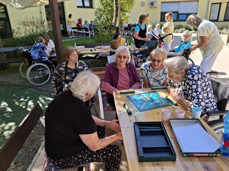 Odpoledne na zahradě se neslo v přátelské atmosféře při hraní deskových her, do kterých se klienti s chutí zapojili. Program byl obohacen vyhlášením křížovkářské soutěže, které přineslo radost i ocenění všem účastníkům.