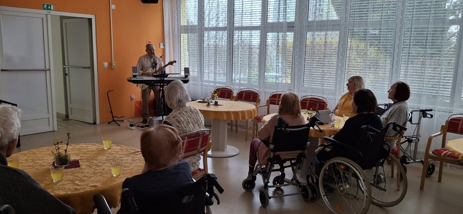 Pan Absolín přinesl do našeho domova příjemnou atmosféru a radost ze živé hudby. Jeho vystoupení na klávesy i kytaru potěšilo všechny přítomné, kteří si s ním s chutí zazpívali známé melodie.