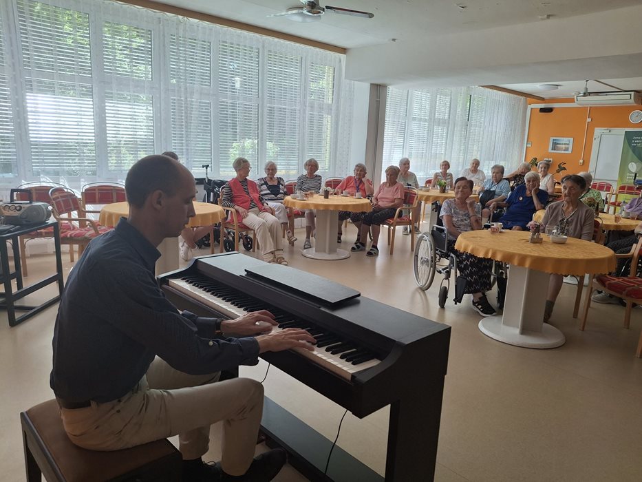 Opět k nám zavítal pan Martin Kocourek, který potěšil naše klienty hrou na klavír. Zazněly známé melodie, jež klienti s radostí poslouchali. Koncert vytvořil krásnou atmosféru a přinesl všem příjemný kulturní zážitek.