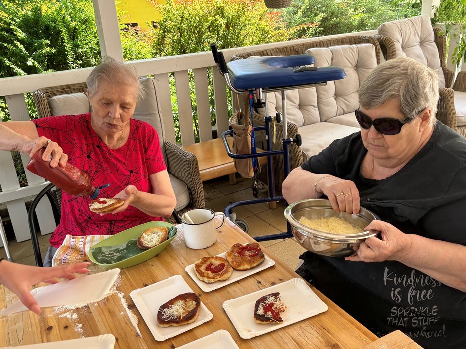 Za slunečného počasí jsme si s klienty na zahradě připravili a vychutnali čerstvé langoše. Atmosféra byla velmi příjemná a nechyběl ani smích a dobrá nálada. Všichni si akci užili a ocenili možnost strávit společný čas venku.