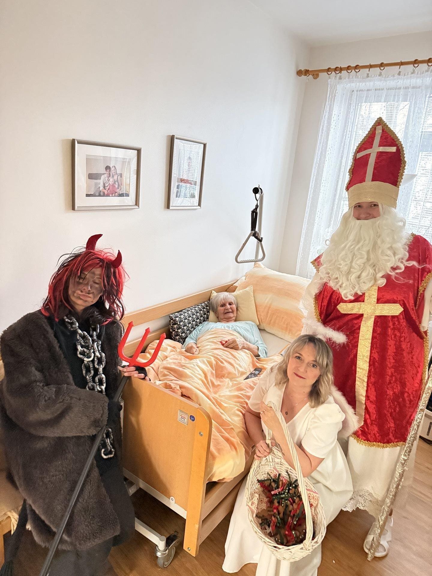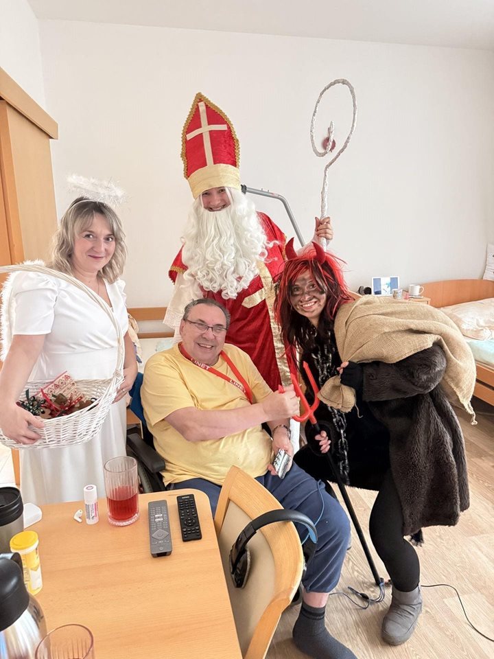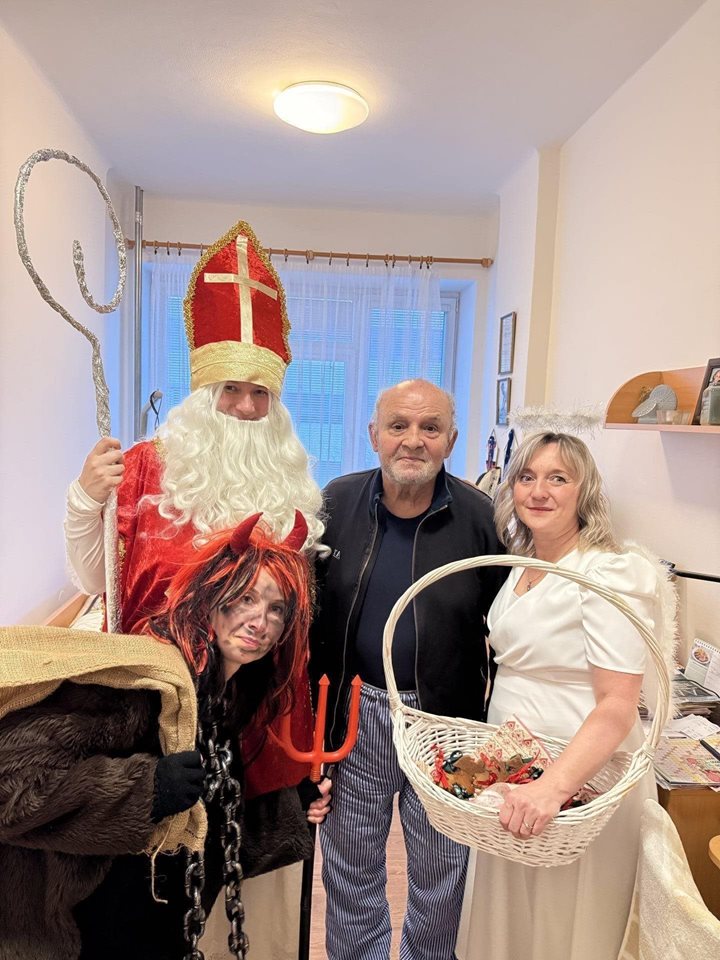 Adventní čas jsme přivítali Mikulášskou besídkou kde nás za hudebního doprovodu pana Helána přišli navštívit Mikuláš s čertem a andělem