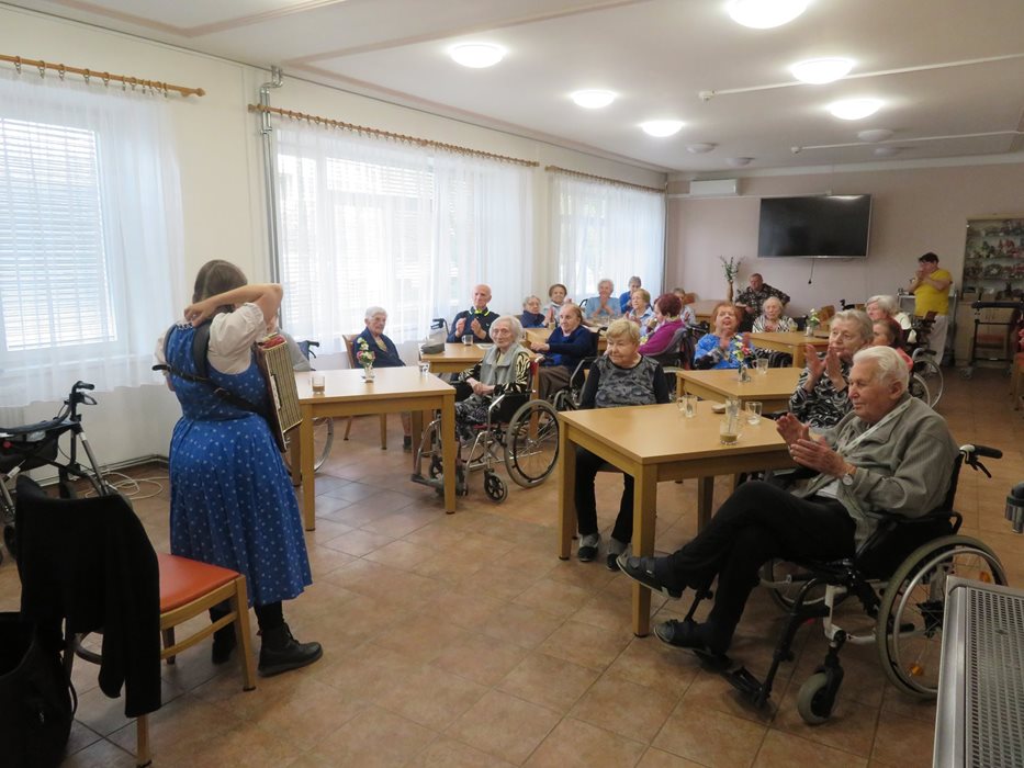 Pozvání přijala harmonikářka Terezka, který vždy přinese dobrou náladu. Tentokrát hrála pro naše obyvatele písničky na přání.