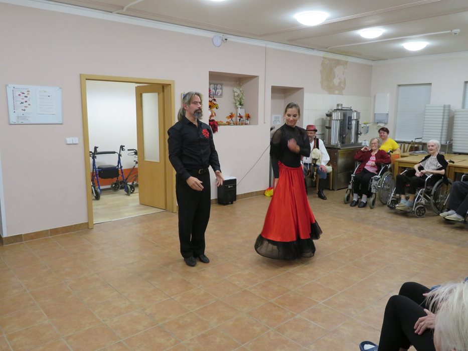 Opět nás navštívili manželé Tryhukovi, kteří tentokrát nepřijeli s dudáckým povídáním, ale představili nám ukázky různých orientálních tanců. Akce se účastnil i pan Dostál hrající také na dudy, a ten zatančil kozáčka. Celé vystoupení se všem moc líbilo a všichni jsme byli nadšeni i z tanečních šatů, které nám při tanci předvedli.