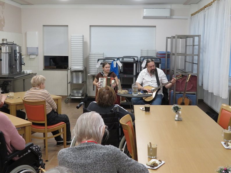 Na vánoční zpívání přišla harmonikářka Terezka, tentokrát i s manželem. Všichni jsme si společně zazpívali vánoční i pohádkové písničky.