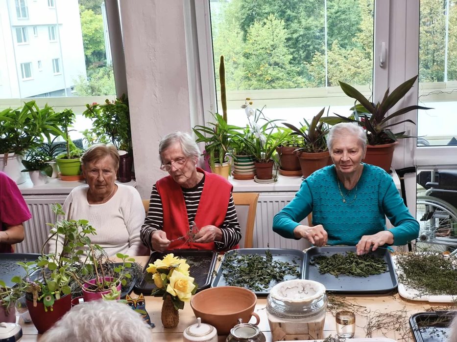 Klienti se v rámci denních aktivit s nadšením pustili do zpracování bylinek, které sami vypěstovali na zahradě. Společně připravovali svazky, sušili lístky a povídali si o jejich využití v kuchyni i léčitelství.