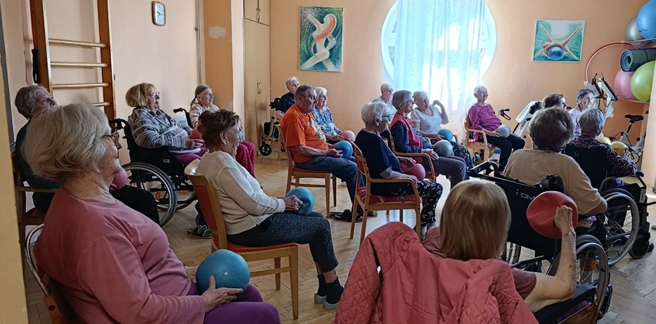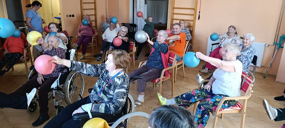 Cvičení je přizpůsobeno možnostem našich seniorů a probíhá v klidném tempu tak, aby se mohl zapojit každý podle svých schopností. Jsme rádi, že společný pohyb přináší našim klientům radost a zároveň podporuje jejich zdraví a aktivní způsob života.